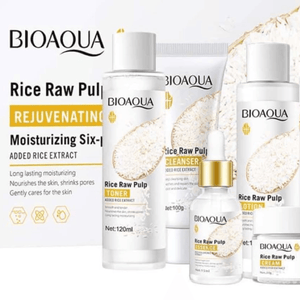 Description: Elevate your skincare routine with our Rice Raw Pulp Face Skin Care Set, a comprehensive 6-piece kit designed to nourish, rejuvenate, and hydrate your skin. Infused with natural rice extracts, this set targets multiple skin concerns, including pigmentation, aging, and dryness, leaving your skin radiant and youthful.